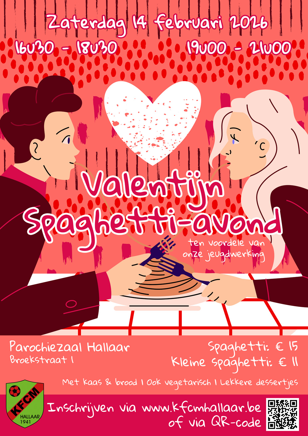 Zaterdag 14 februari 2026 van 16u30 tot 18u30 of van 19u00 tot 21u00 in de parochiezaal van Hallaar